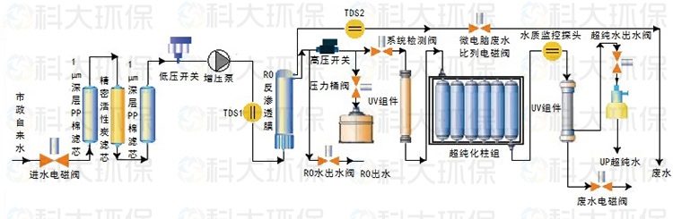 電源、紫外消解、缺水、滿水、純水取水、內循環(選配)、超純水取水、 進水水質報警(選配),純水水質報警、超純水水質報警、自動沖洗/手動沖洗等; |